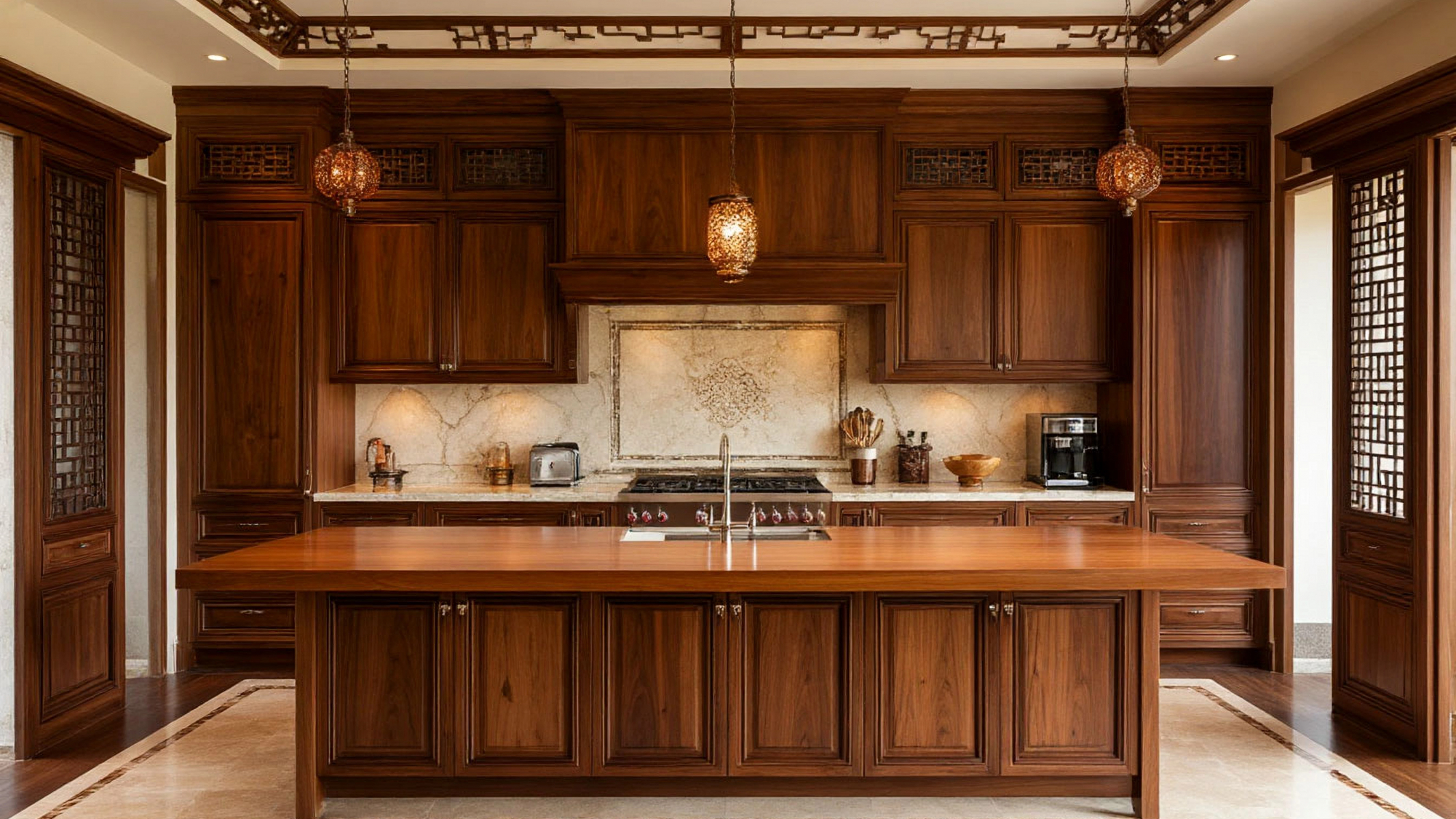 Одним из важных преимуществ является универсальность такой кухни. Несмотря на четкую стилистику, "Миндаль" прекрасно впишется в самые разные интерьеры. В просторных загородных домах она подчеркнет естественность и природность пространства, а в современных квартирах создаст ощущение уюта и защищенности. Глубокие тона ореха позволяют легко сочетать ее с другими материалами — металлом, камнем, тканью. Универсальность оттенков дает возможность использовать яркие акценты: ковры, светильники, посуду или текстиль с традиционным восточным орнаментом.