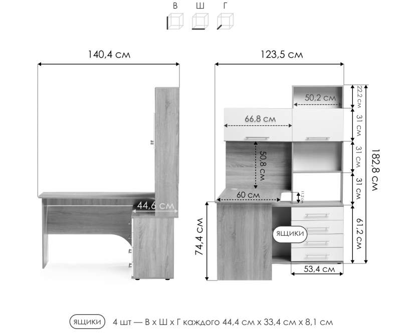 Цвет карткаса: Дуб сонома / белый